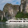 13h45-14h00: Arrive Bo Hon archipelago, you will visit Surprising Cave to see a lot of stalagmites and stalagtiles with different shapes of sea lives, then go kayaking or bamboo boat in Luon Cave to discover the beautiful lagoon. Visit Titov Island with sandy beach adjacent to the towering limestone mountain with excellent backdrop of the Bay, and climb up Titov Peak for a panoramic view of the bay like paradise.